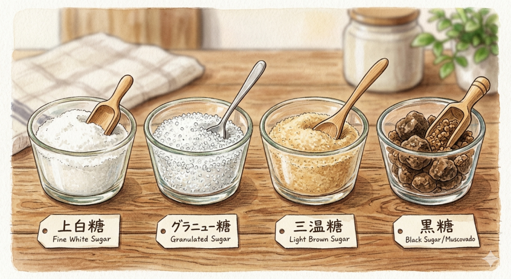 ・三温糖…甘さが濃く、カラメルや和食と相性が良い